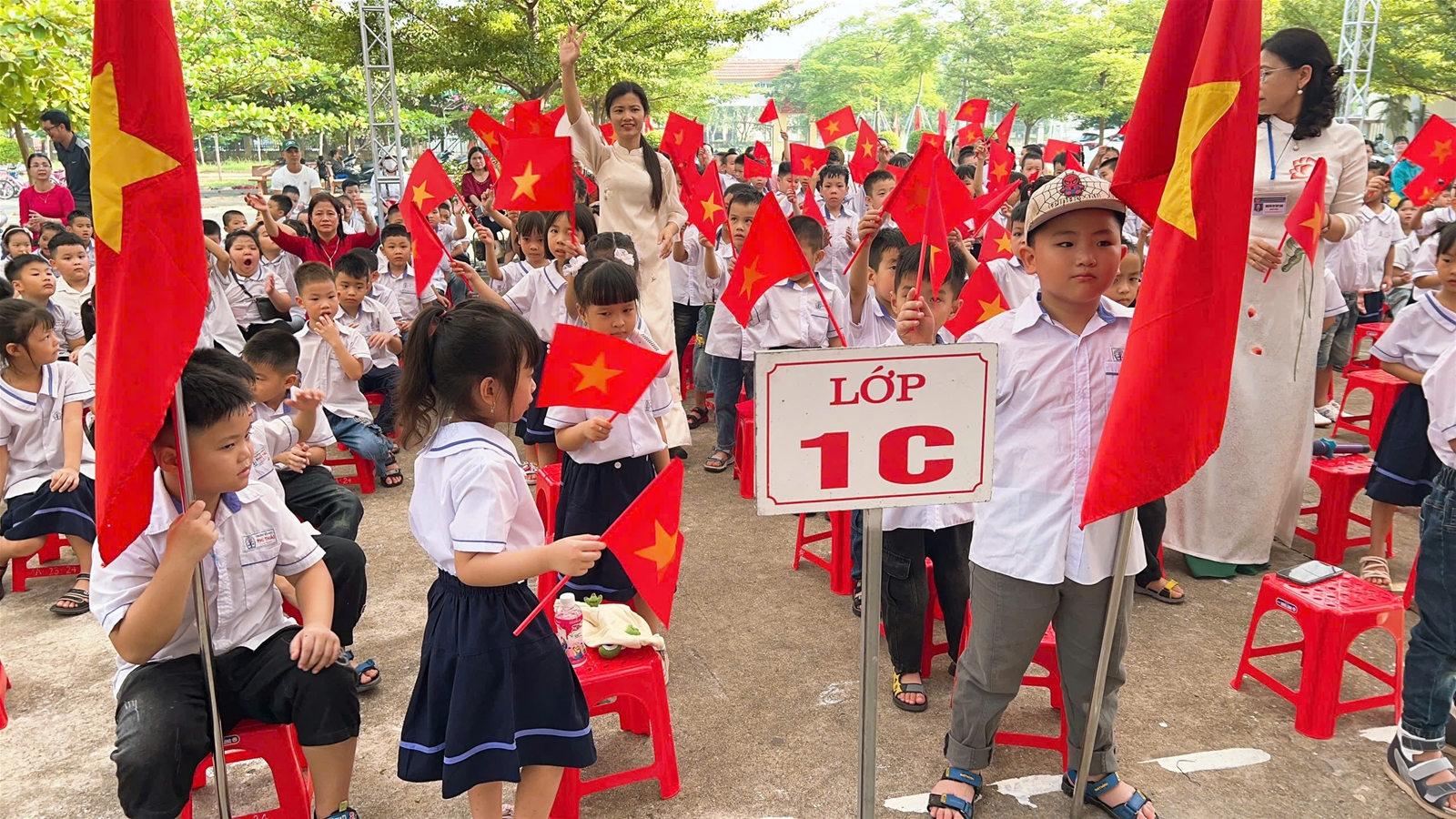 Nội dung đầu tiên của Lễ khai giảng năm học mới là chào đón 94 em học sinh lớp 1 ngây thơ, đáng yêu lần đầu tiên đến trường. Sau diễn văn khai giảng, tiếng trống trường vang lên rộn rã báo hiệu một năm học mới đã đến với bao hứa hẹn.